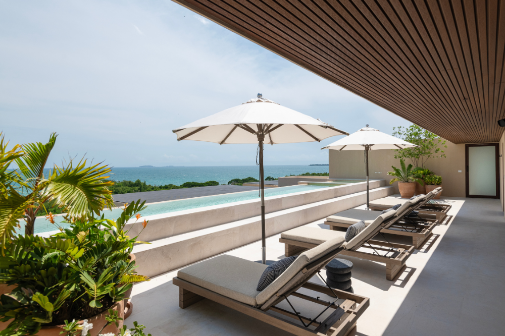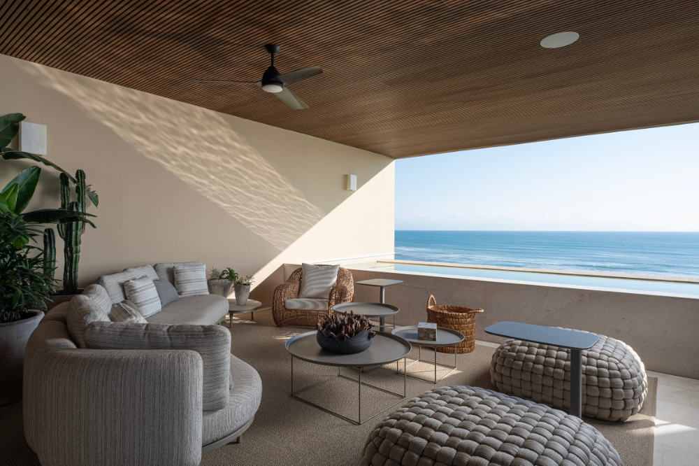 A two-story oceanview VIP penthouse featuring four en-suite bedrooms, open indoor–outdoor living, two private infinity pools, and a rooftop terrace with jacuzzi and grill overlooking the Pacific.