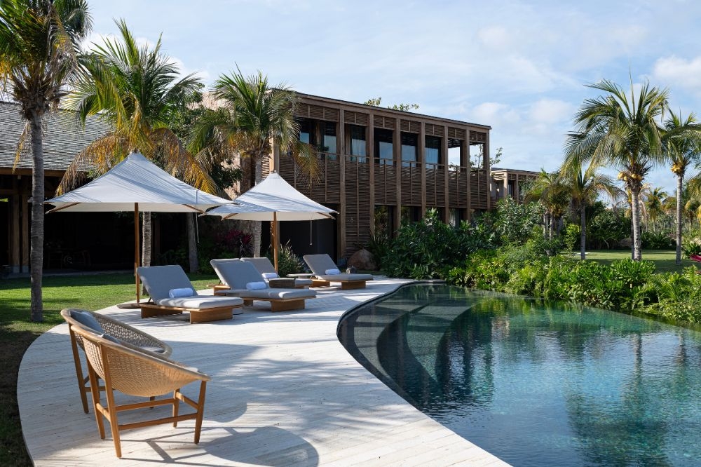 A signature infinity-edge pool, expansive terraces for dining and lounging, and wellness-oriented spaces create a refined atmosphere ideal for rest and reset.