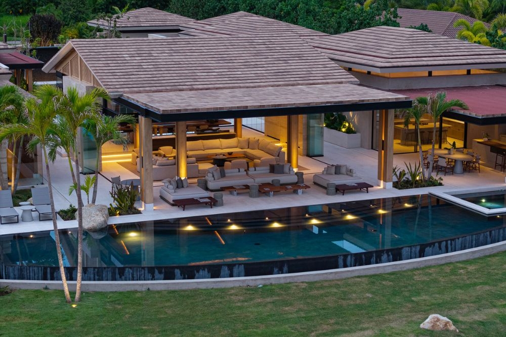 A resort-style pool, expansive social areas, and dedicated entertainment spaces—including media and game rooms—make it one of the best villas for holidays in Punta Mita.