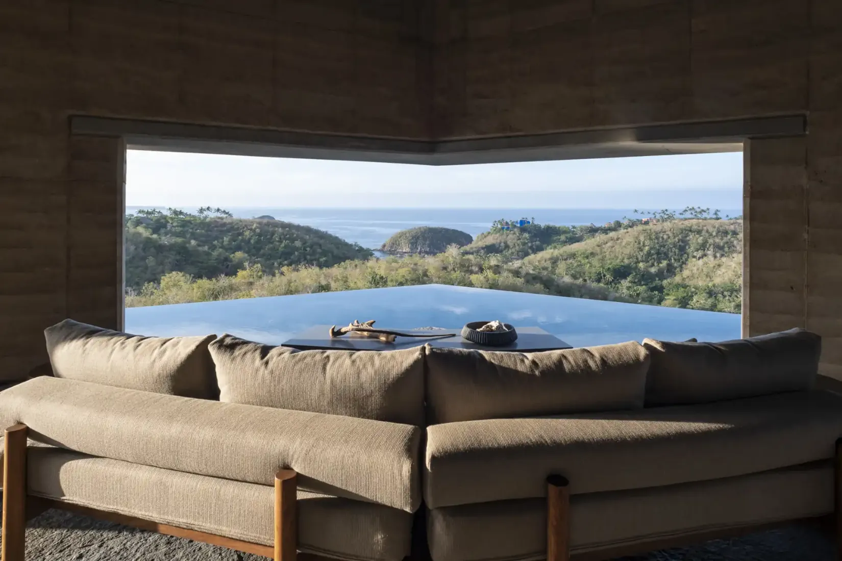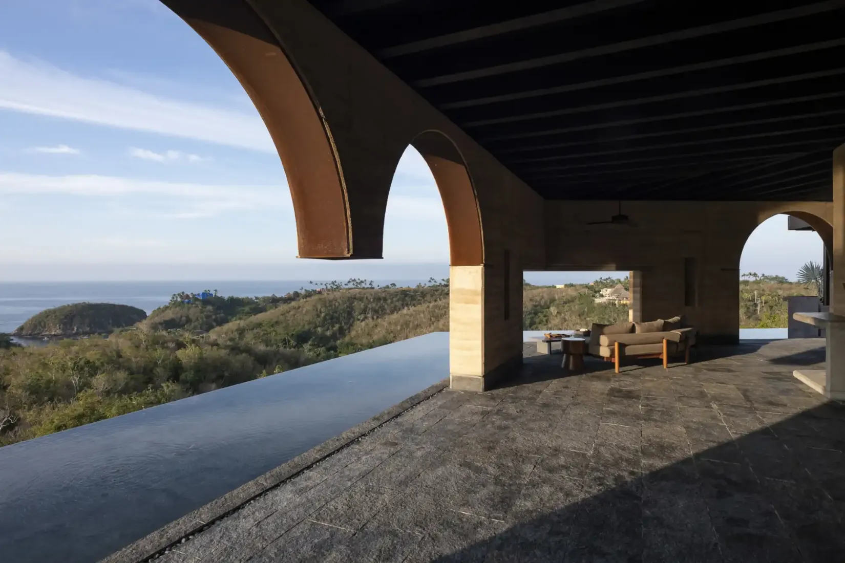 Casa Atalaya is a luxurious property in Costa Careyes, crafted using the artisan technique known as rammed earth. The walls display layers of earth that create a striking mural, full of texture, color variations, and natural patterns, while the house's architecture seamlessly blends the design and cozy atmosphere of a traditional Mexican hacienda with the simplicity and elegance of Japanese architecture. Atalaya boasts incredible amenities, including serene sleeping sanctuaries, terrace and lower pool dining areas, a petanque court, workout areas, a garden and master pool, a cava bar, a screening room, and dedicated concierge services. Nestled within the ever-changing jungle, the house offers breathtaking, unobstructed views of the ocean, complemented by the natural beauty of the surrounding jungle.